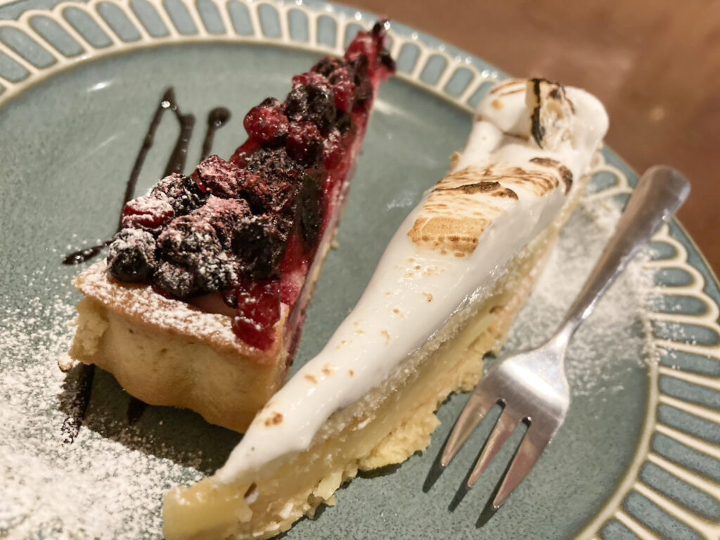 ※ケーキの右の写真は、私とあざらし隊長がそれぞれ違うタルトケーキをオーダーしたので、お店の方にお願いして、半分ずつ食べれるようにカットして持ってきてくれました。通常はショーケースのサイズです。